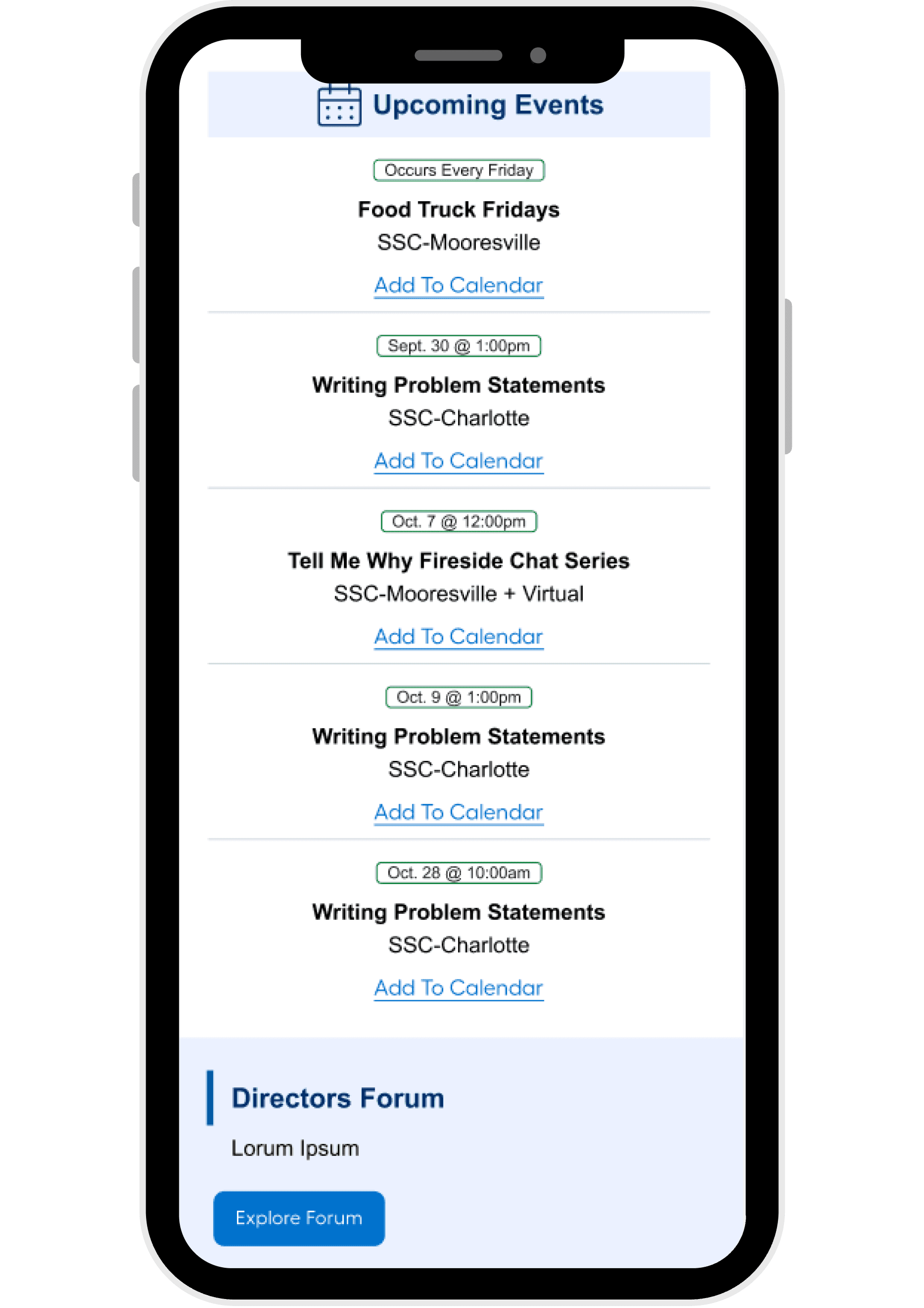 Each section was limited to 3–5 items, presented as bulleted summaries with embedded links for quick access. A teaser tile for the Directors-only Forum was added to encourage engagement, and a navigation bar was introduced to improve scannability and orientation.
